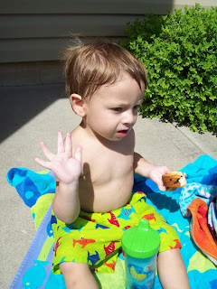 Zachary had a great time helping me babysit my good friends little girls.. Rebeccah, Thalia, and Isabella (not pictured because she napped most the time. We played in the water, ate blueberry muffins, and watched a movie. Zachary had the most fun playing ball with Becca and pretending to be a puppy while they played house.